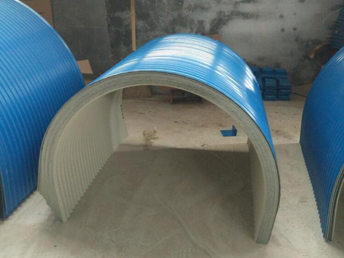 的规格有很多,厚度从0.3mm-0.6mm。使用彩钢板经过压瓦机压制而成,然后根据客户需要打拱也是弧度。